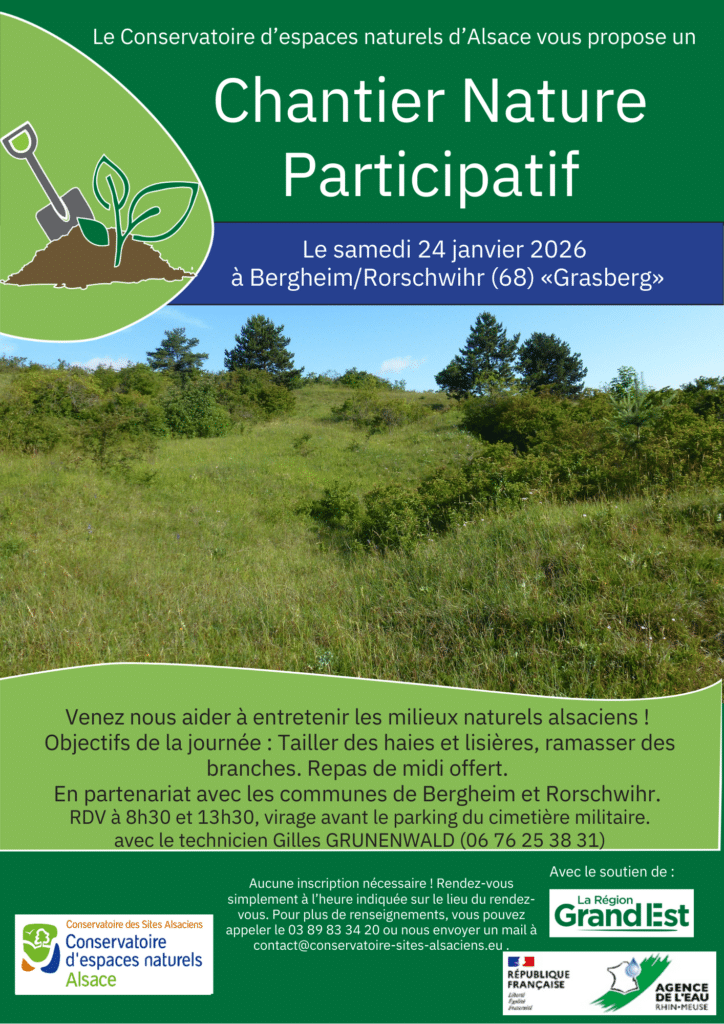 Venez aider le CENA à entretenir les milieux naturels alsaciens, en partenariat avec les communes de Bergheim et Rorschwihr. Objectifs de la journée : Tailler des haies et lisières, ramasser des branches. Repas de midi offert RDV à 8h30 et 14h, virage avant le parking du cimetière militaire avec le technicien Gilles Grunenwald. Pour plus […]
