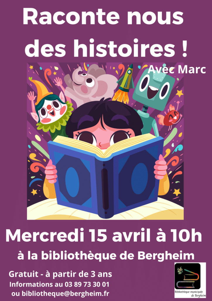 Raconte nous des histoires avec Marc. Mercredi 15 avril à 10h à la bibliothèque à partir de 3 ans.